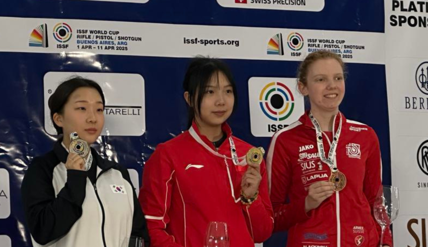 China achieved the highest performance in Buenos Aires’ ISSF World Cup competition by winning eleven medals overall. In the 10m air pistol mixed team event Chinese athletes won the gold and silver medals as their best accomplishment of the competition.