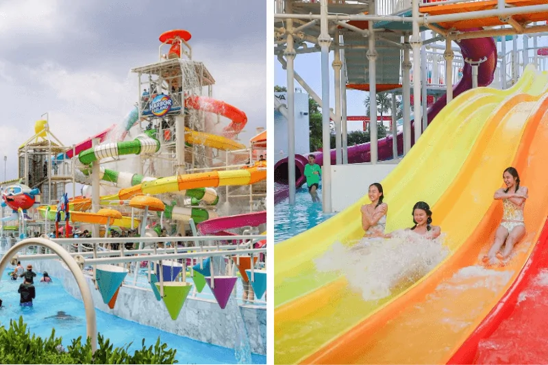 Super Island accommodates 18 slides: Vortex light show, Mako Rush fiery hoops, 51 o Super Plunge. Free falls and loops with no gravity thrill the teens/ adults. Heights 10-20m scream above the crowd in Bangkok.